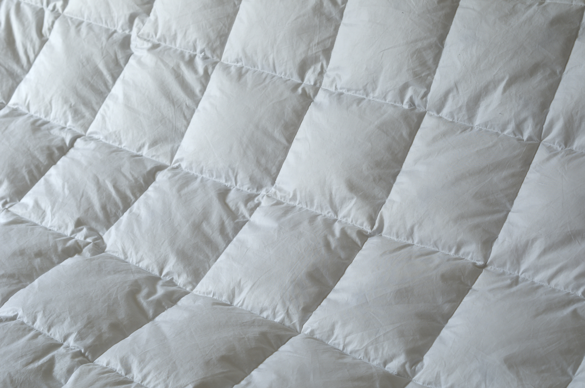 新しい立体キルトの側生地に、羽毛を充てんし、仕上げ・検針の最終チェックを経て生まれ変わります。
